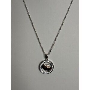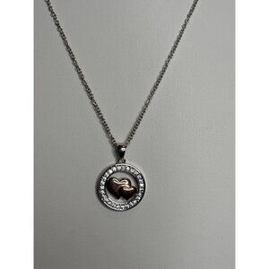 Fine Silver Plated Heart Pendant Necklace With Two-Tone Design & Crystal Accents