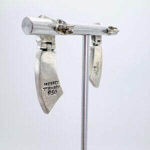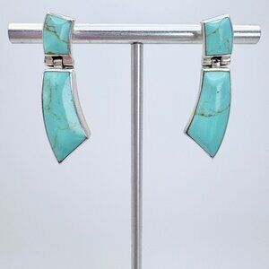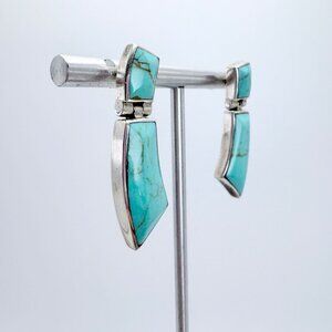 Fine Silver Turquoise Bezel Set Dangle Earrings Butterfly Closure 1.25" Length