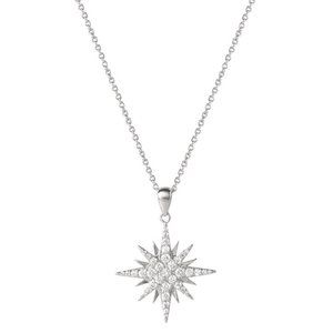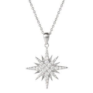 Fine Siver Plated Brass Cubic Zirconia Starburst Pendant, 18" + 2" Ext Chain