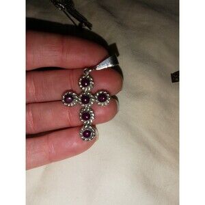 Price Alert!! Artisan Signed Vintage Handmade 925 Sterling Silver Cross pendant w 6 rare semi-precious Purple Sugilite gemstones, each stone wrapped in a sterling silver 925 twisted rope design, slightly oxidized. This style & materials are similar to Navajo Silver Jewelry, but not confirmed the artist as Navajo, yet.