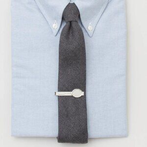 Silver tennis racket tie bar/clip. Measures 1 3/4".