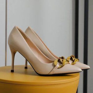 Fine heel metal buckle sharp -headed shallow mouth banquet Ms. wearing fairy shoes everyday
