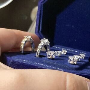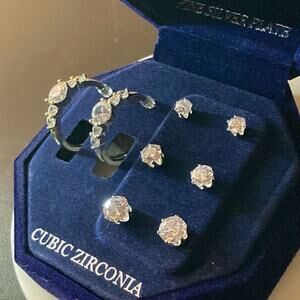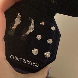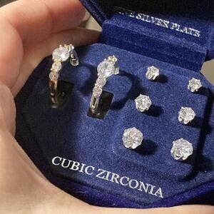 Fine silver plated, cubic, zirconia hoop, and stud earrings
