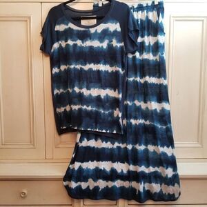 Fine Collection 2 pc Top Skirt Teal Ivory M/L