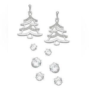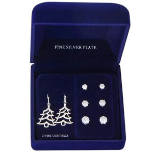 Fine Silver Plated Cubic Zirconia Christmas Tree Four Piece Earring Set