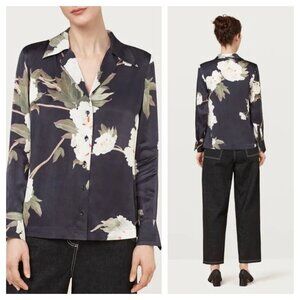 Finery Levine Soft Satin Pyjama Button Down Shirt in Blue, White, and Green. Women's 4. Preowned condition. Please refer to photos for any signs of wear.