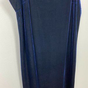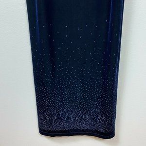 Finesse Gown Maxi Dress 2X Rhinestone Embellished Velvet Square Neck Navy Blue