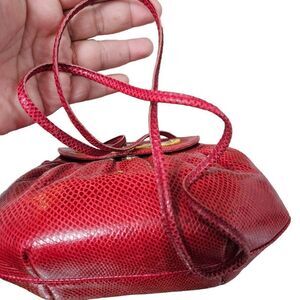 Great clean pre-loved condition Finesse la Model crossbody/clutch bag for women. Snake skin outside materials. Have some wear. Red color with gold and silver hardware.