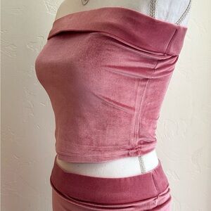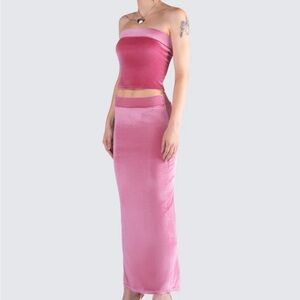 Finesse Pink Velvet Strapless Top and Long Skinny Maxi Skirt Set (Medium) NWOT