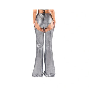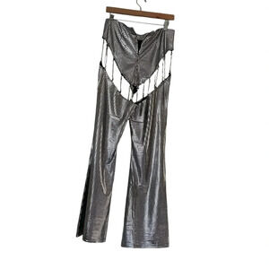 Finesse Sadie Cut-Out Metallic Silver Flare Pants Disco Chains Sz M Burning Man