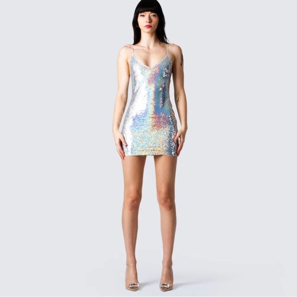 Finesse Tara Multi Sequin Mini Dress Spaghetti Straps L