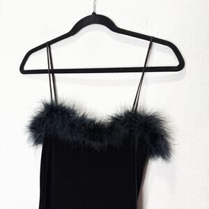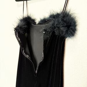 Finesse Vintage 90s Velvet Feather Spagetti Strap Fitted Long Maxi Dress Vamp