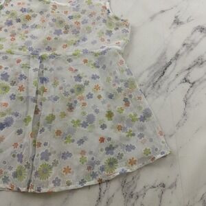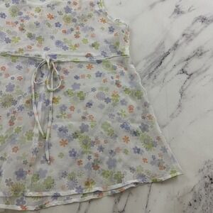 Finesse Womens Vintage Y2k Babydoll Top Size L White Purple Floral Sheer