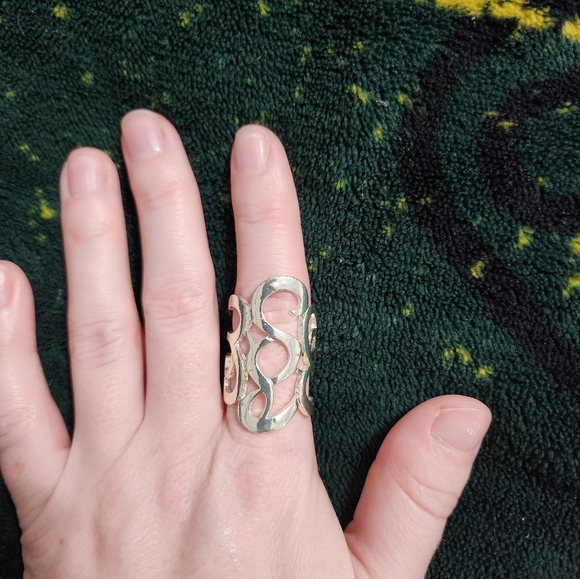 Silver long finger ring size 5