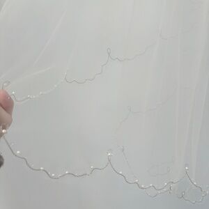 Fingertip Bridal Veil with Scalloped Edge and Beaded Accents