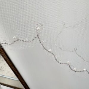 Simple, sweet, and effortlessly elegant—this fingertip-length bridal veil is the perfect accessory for the classic bride. Made from soft, lightweight tulle, it features a delicate scalloped edge accented with tiny, hand-sewn beads for just a hint of shimmer as you move.
