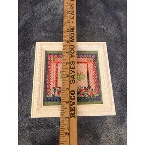 Finished Framed Cross Stitch Piece 4" x 4" Tulip Garden Farmhouse Cottage Core