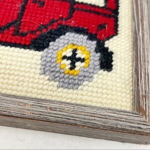 Finished Framed Needlepoint Crewel Old Fashioned Car Model T Red Ivory. Good pre-owned condition. Gentle signs of wear. All measurements are.