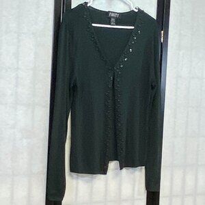 Finity Black Rib Knit Open Cardigan Sweater Long Sleeve V-Neck Button Accent L
