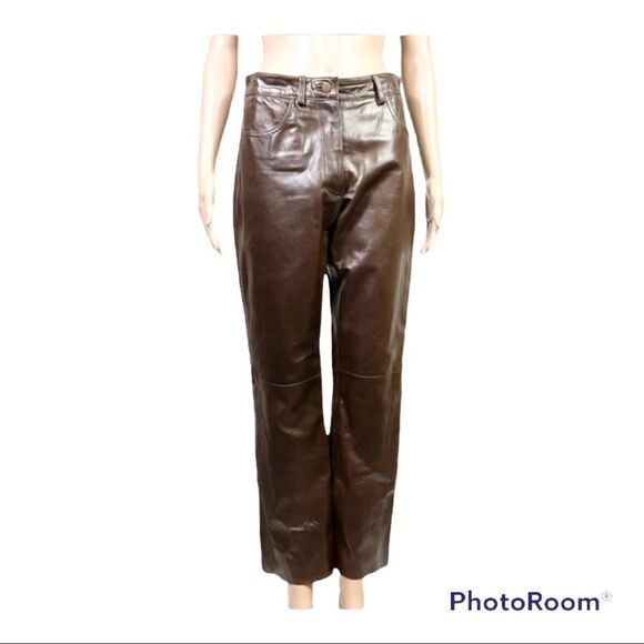 Finity Dark Brown Genuine Leather Straight Leg High Rise Pants Women's Size 6