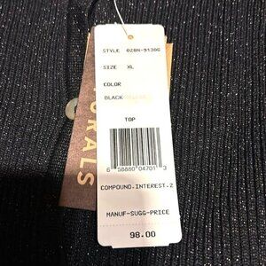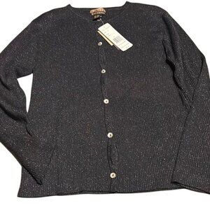 Finity Naturals Womens Black & Silver Ribbed Cardigan Sweater XL