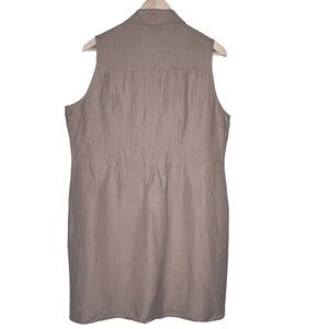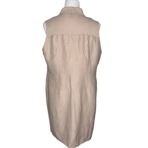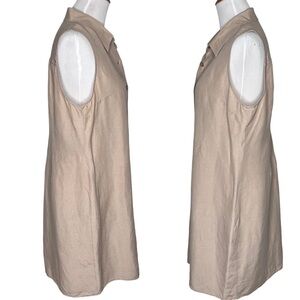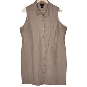 Finity Silk Linen Sleeveless Button Down Shift Dress 16 Tan Knee Length Classic