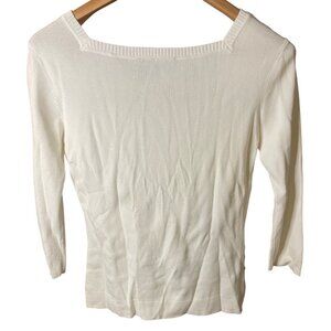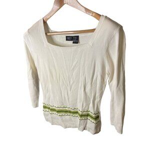 Finity White Green Detail 3/4 Sleeve Pullover Stretch Top Sz S