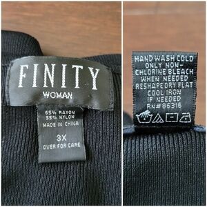 Finity Women's Black Stretchy V-Neck Embroidered Stitching Detail Blouse Size 3X