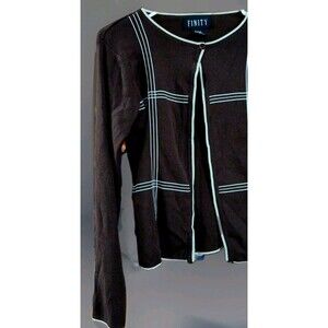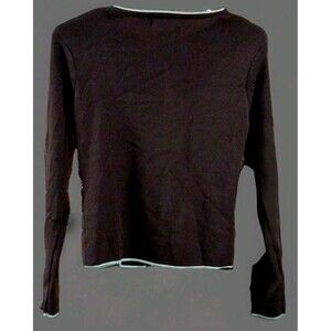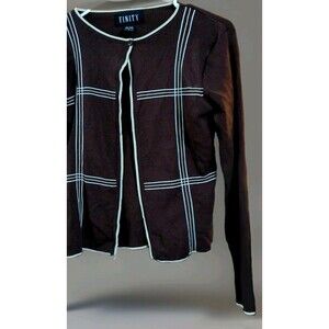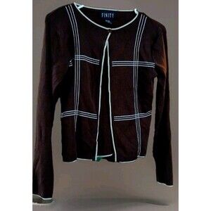 Finity Women’s M Brown White Trim Cardigan One Button Y2K Preppy Grunge Sweater