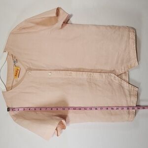 Finity Women's Pastel Pink Short Sleeve 100% Linen Round Neck Button Down SZ M
