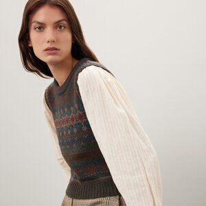 We are loving the nostalgic vibe of this Fair Isle print sweater vest top by Sea New York to complete your off-duty fall look.