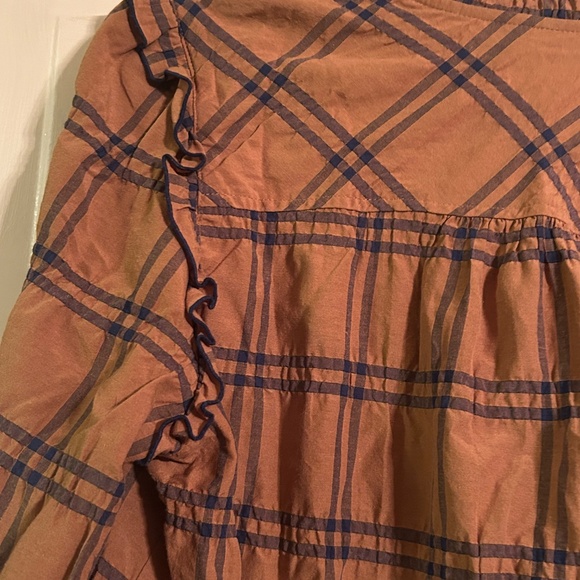 Finlay Byrdee Vicuna Pucker Plaid Long Sleeve Ruffle Blouse size XL