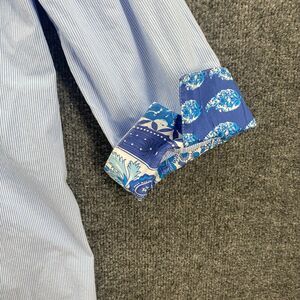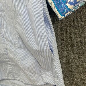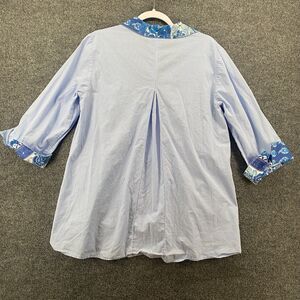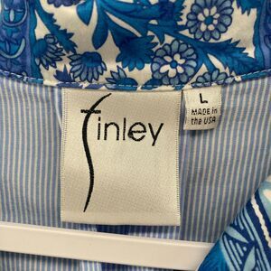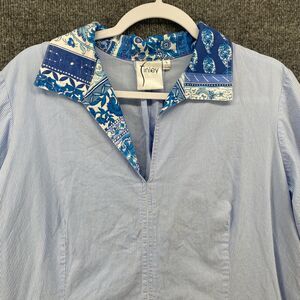 Finley Blouse Top Womens L Blue Striped Tunic Collared Office Ladies Preppy