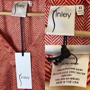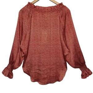 Finley Candace Satin Popover Peasant Blouse in Brick Herringbone, size XS