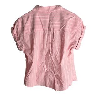 Finley Diamond Short Sleeve Button-Down Poplin Shirt in Striped Pink. Size S / Small. Features V-neck, cuffed short sleeves, button front, and stripe print. Excellent condition, no flaws.