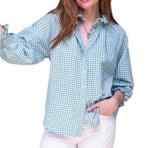 Finley Fiona Rushed Green and Blue Seersucker Button Front Blouse Size Medium 📦
