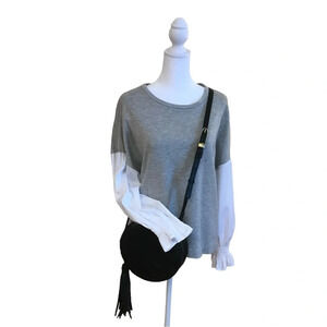 Finley White & Grey Spring Top Made in Dallas TX-USA Blouse