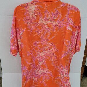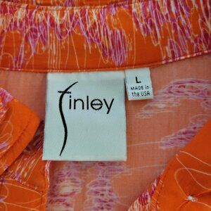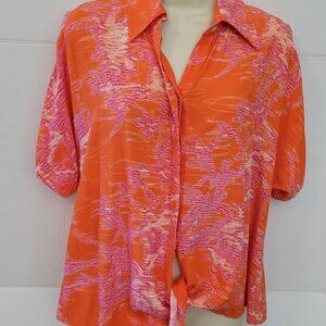 Finley Womens Hawaiian Button Down Shirt Orange Pink Abstract Tropical Sz L EUC