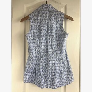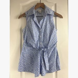 Finley Women's Sleeveless Button Up Top Blouse Blue Floral Tie Front Size XS