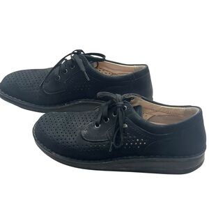 Step into premium German comfort with these Finn Comfort oxford shoes in classic black leather. Size 42 EU (approx. Men’s US 8.5–9), featuring a perforated upper for breathability and orthopedic-grade craftsmanship. Made in Germany and produced by Waldi, these shoes offer high arch support, a roomy toe box, and superior durability. Ideal for walking, travel, or casual-professional wear. Gently worn with solid tread and minimal interior wear.