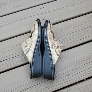 Finn Comfort Jamaika Snakeskin Print Embossed Leather 2 Strap Wedge Slide Sandal