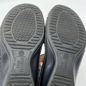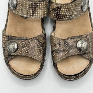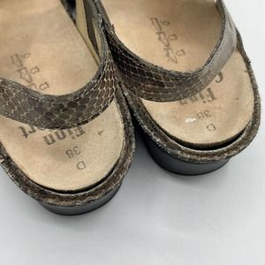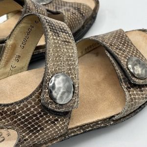 * Finn Comfort Sandal Womens 7.5 Brown Snakeskin Adjustable Alanya Slingback Wedge