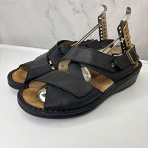Finn Comfort Sandals Women's Slingback Black Leather Buckle sz 38 D US 7 Strappy