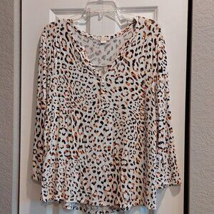 Finn & Grace Animal Print 3/4 Sleeve Blouse Women's Size S