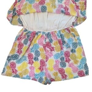 Finn & Grace Pineapple Print Halter Romper Size S. Adorable halter and short one piece romper with multiple colored pineapple print. Keyhole button back, elastic at waist.
