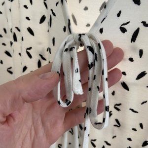 Size medium. Stretchy material. Elastic band at bottom. Smoke free pet free home. NO rips tears or stains.
