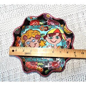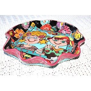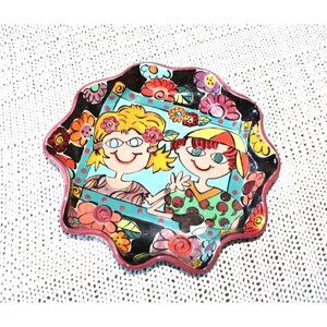Fiona Collins Hand Painted Art Pottery WHIMSICAL Colorful PLATE Kids playing