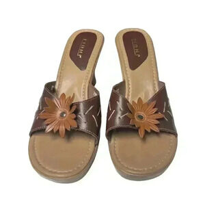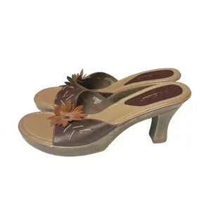 Fioni 90's Y2K Vintage, Brown Leather Floral Open Toe Heel 8.5