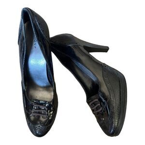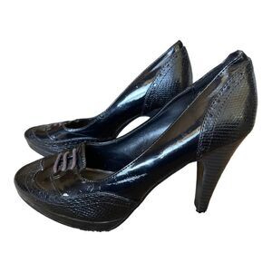 Fioni Black Lace Top Oxford Heels Size 7.5 Classic Preppy Minimalist Workwear