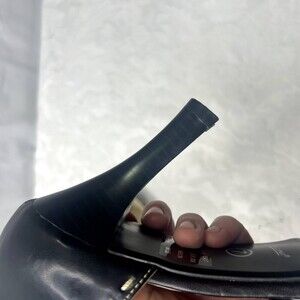 High Heeled black pumps with tan Faux Leather flowers on lower strap.